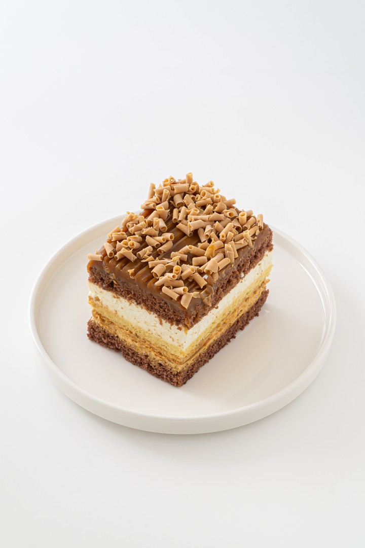Nasze Ciasto Karmelowe to kusząca kompozycja smaków, której trudno się oprzeć . Składa się z ciemnego i jasnego biszkoptu, przełożonych aksamitnym kremem karmelowym i lekką bitą śmietaną.