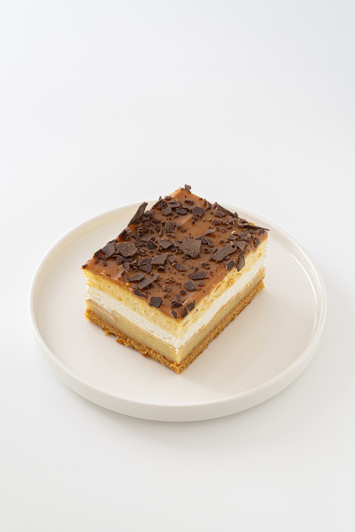 To absolutna nowość, która przeniesie Cię w świat czekoladowych przyjemności. To miękkie, miodowe ciasto jest mistrzowsko przełożone budyń waniliowym, chrupiącymi herbatnikami, lekką bitą śmietaną, delikatnym biszkoptem, a całość jest koronowana karmelową nutą toffi i posypana pyszną czekoladą. To połączenie smaków tworzy prawdziwą ucztę dla zmysłów, której niezapomniane wrażenia zostaną w Twojej pamięci