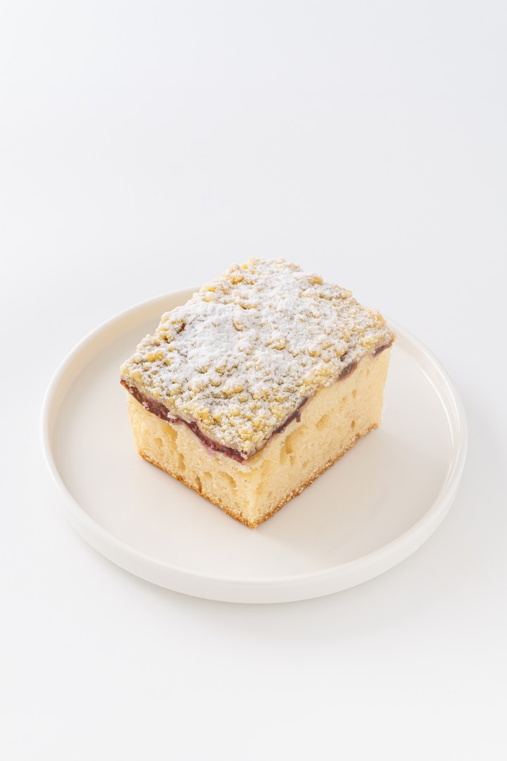 Całość jest wykończona kruszonką, która nadaje ciastu chrupkości i kontrastu smakowego.