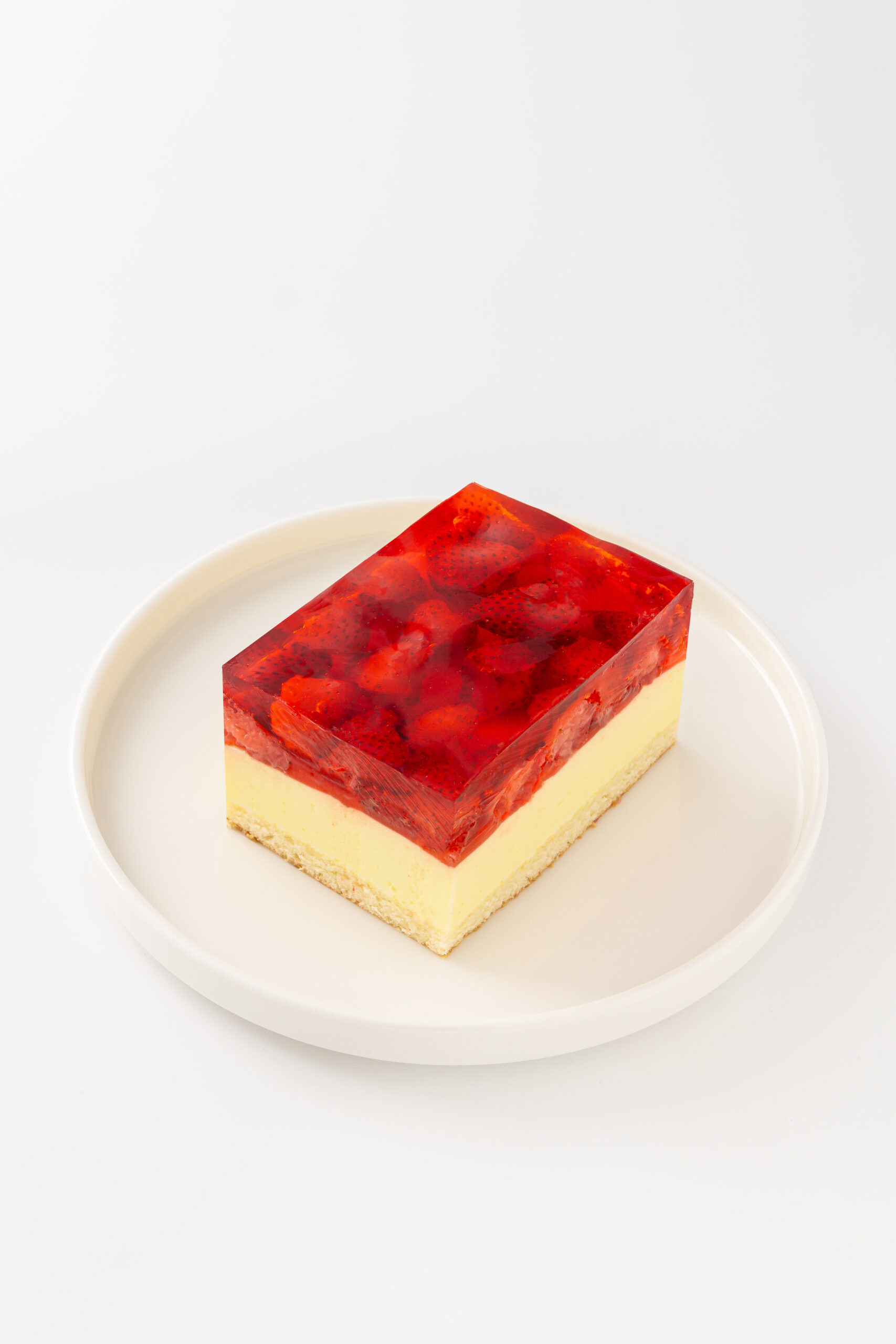 Odkryj puszysty sernik na lekkim spodzie biszkoptowym z dodatkiem soczystych truskawek. To ciasto jest hojnie obsypane owocową galaretką, co nadaje mu wyjątkowego smaku i świeżości. Każdy kęs to prawdziwa uczta dla podniebienia.