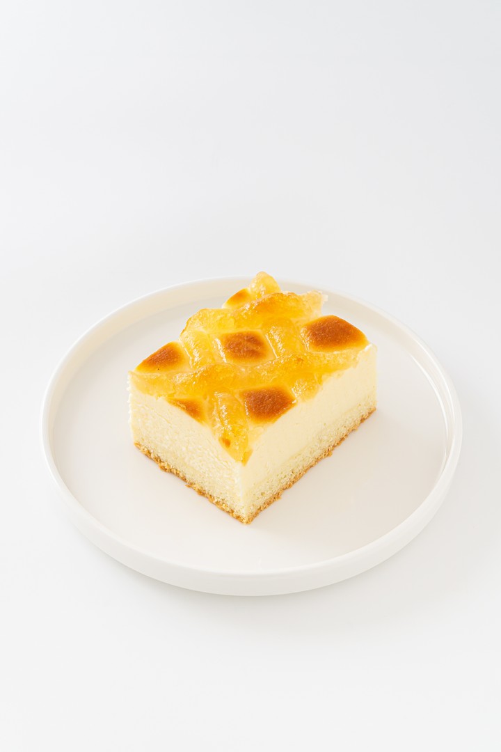 Na kruchym, jasnym spodzie spoczywa aksamitna masa serowa, z którą zostało zapieczone nadzienie gruszkowe, nadając ciastu subtelną słodycz i wyjątkowy aromat.